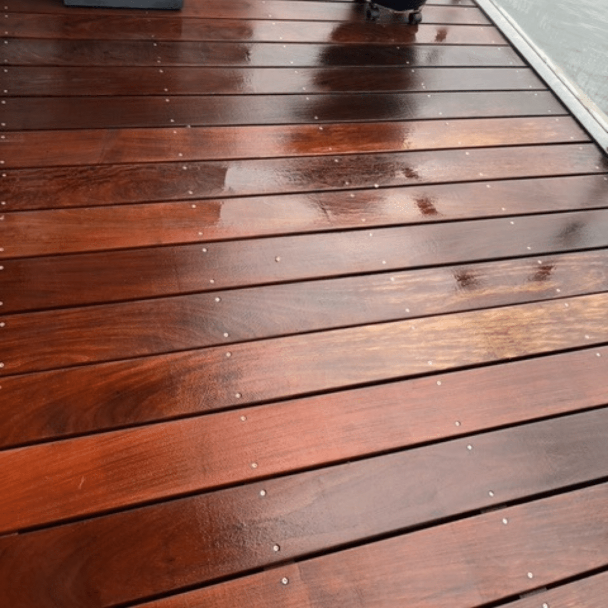 Vores metode til rensning af træterrasser er både bæredygtig og skånsom. Resultatet er synligt samme dag.